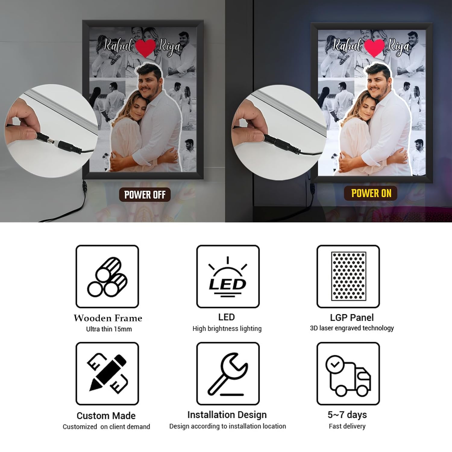 • Use: It serves as a decorative way to display photos or quotes, adding a modern, ambient light effect to any room or desk.