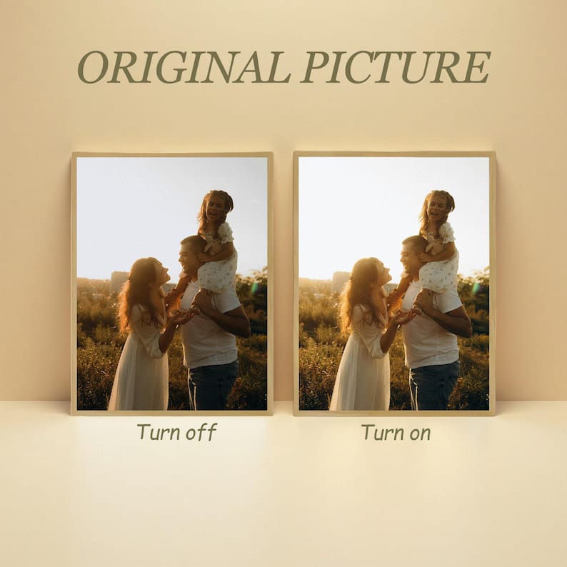 It looks fantastic during the day as a standard photo frame and then transforms completely into a glowing work of art at night.