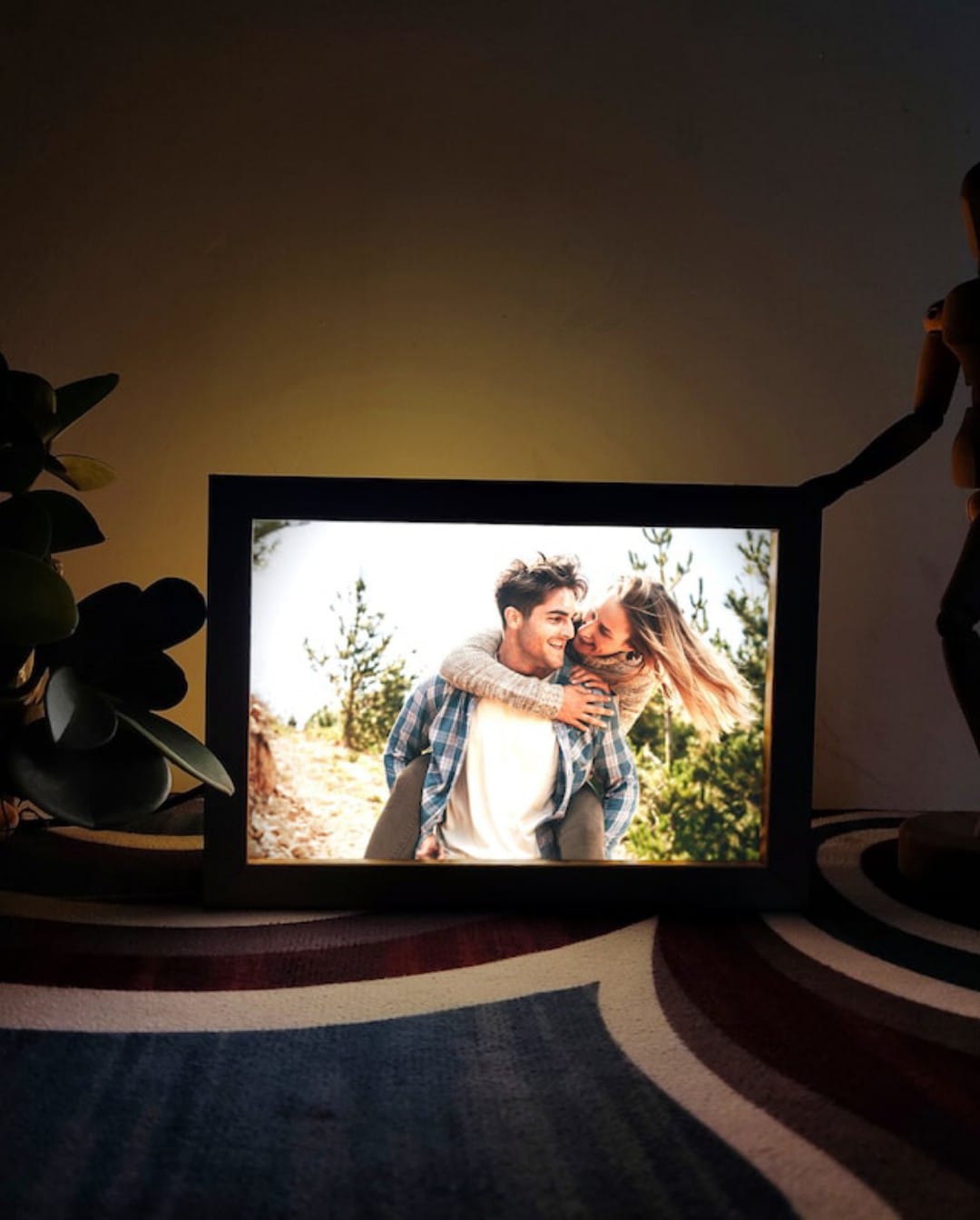 The backlighting is incredibly soft and warm, casting the photo in a beautiful, ethereal glow. It truly transforms the mood of the room.