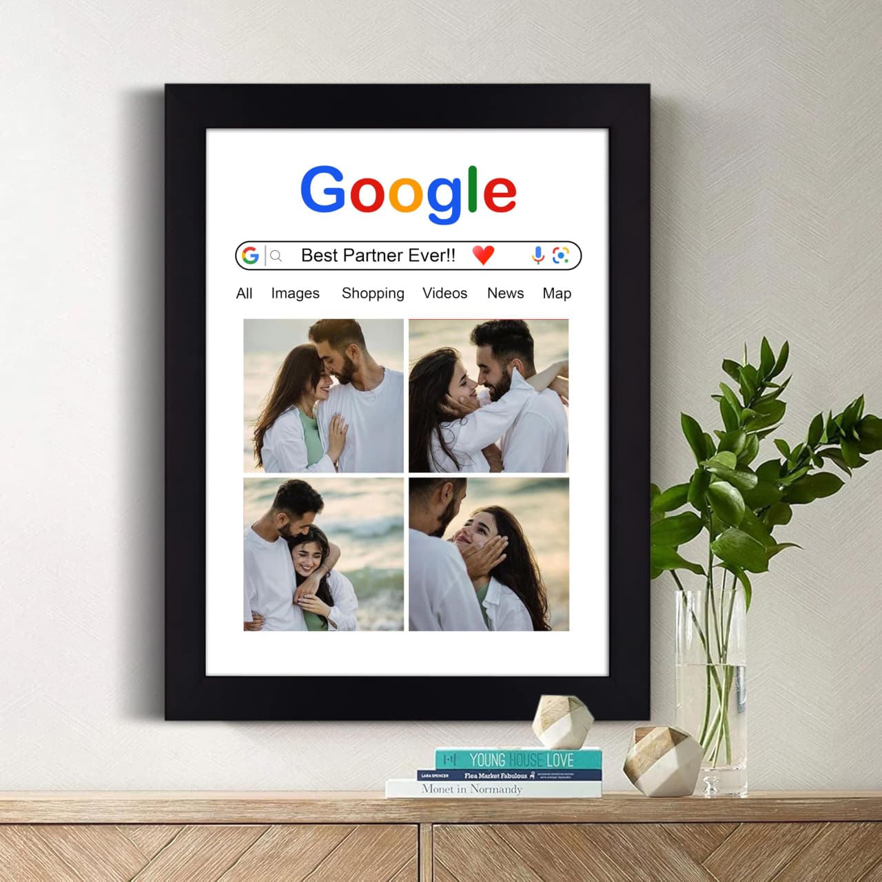 Having the search query and the result text customized with our inside joke/date made this the most unique gift ever. It’s deeply personal and funny.
