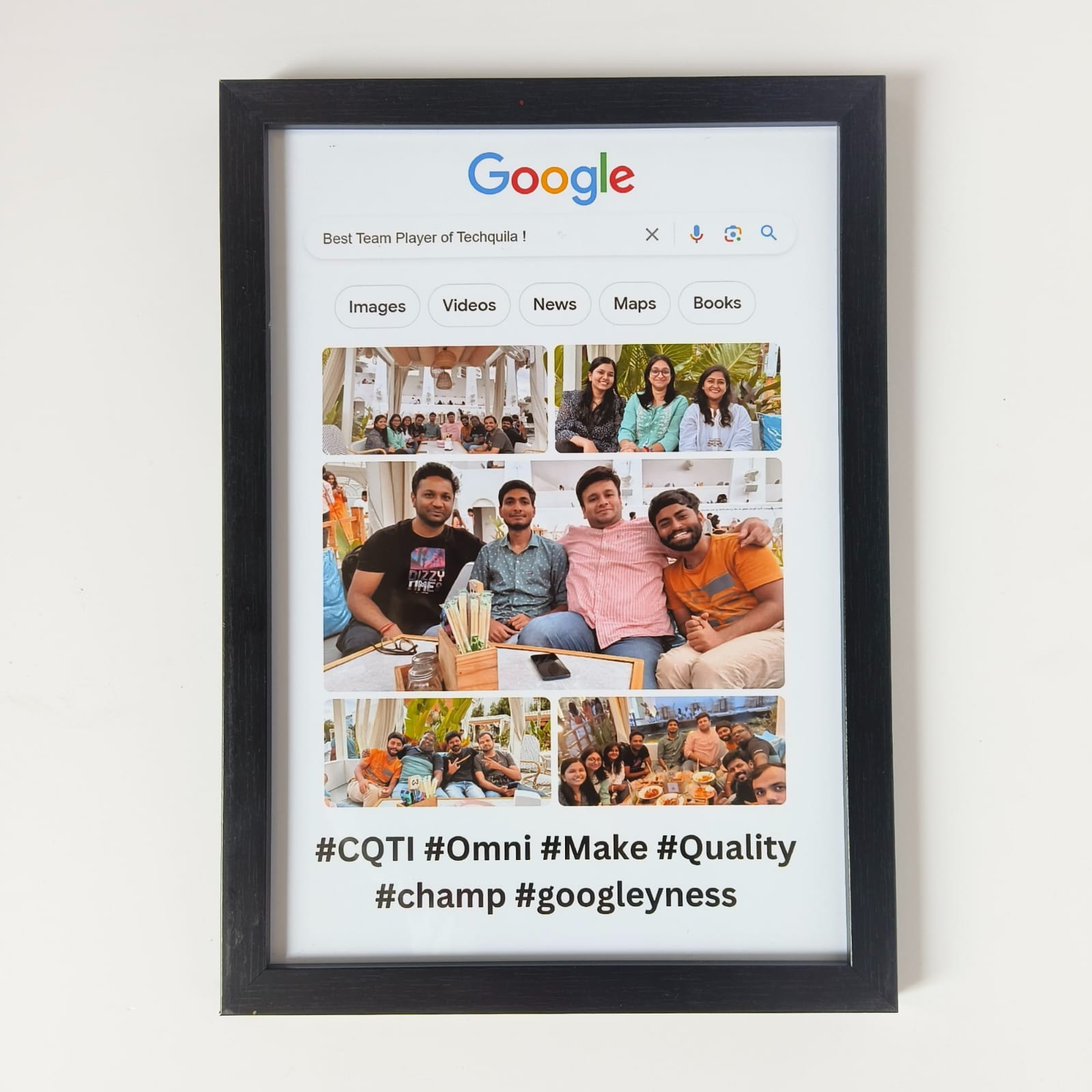 The frame accurately captures the iconic Google aesthetic, right down to the font and interface elements. It looks incredibly authentic and high-quality.