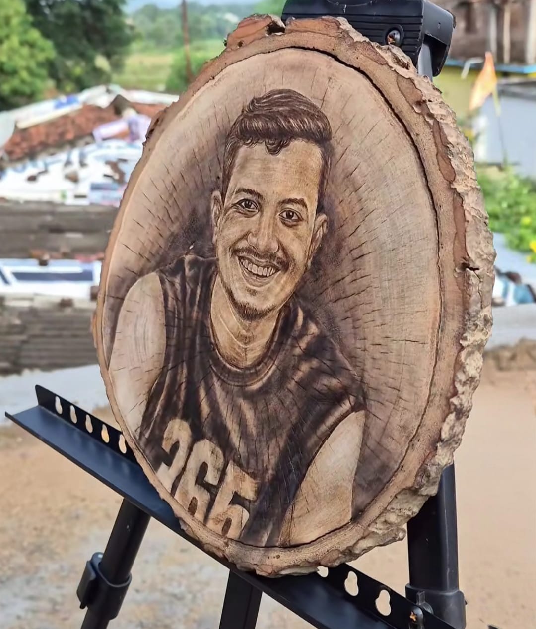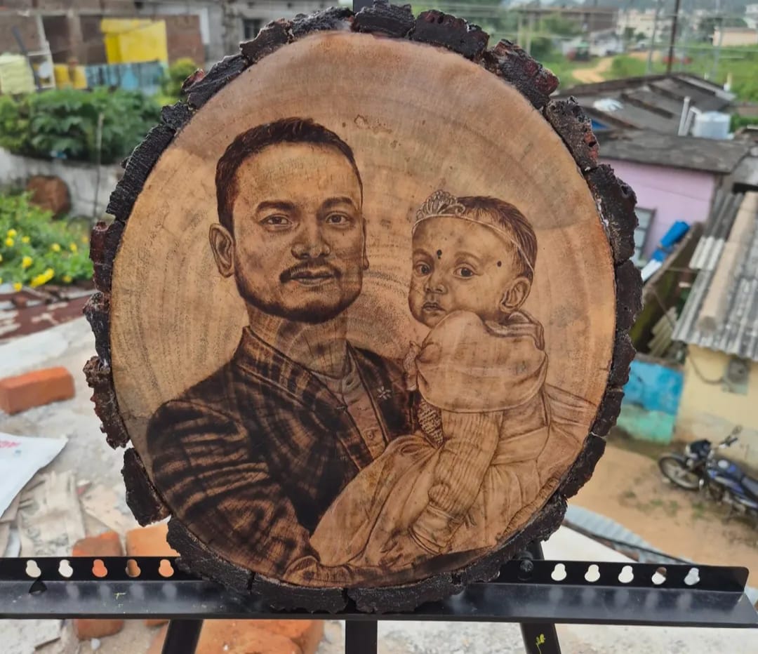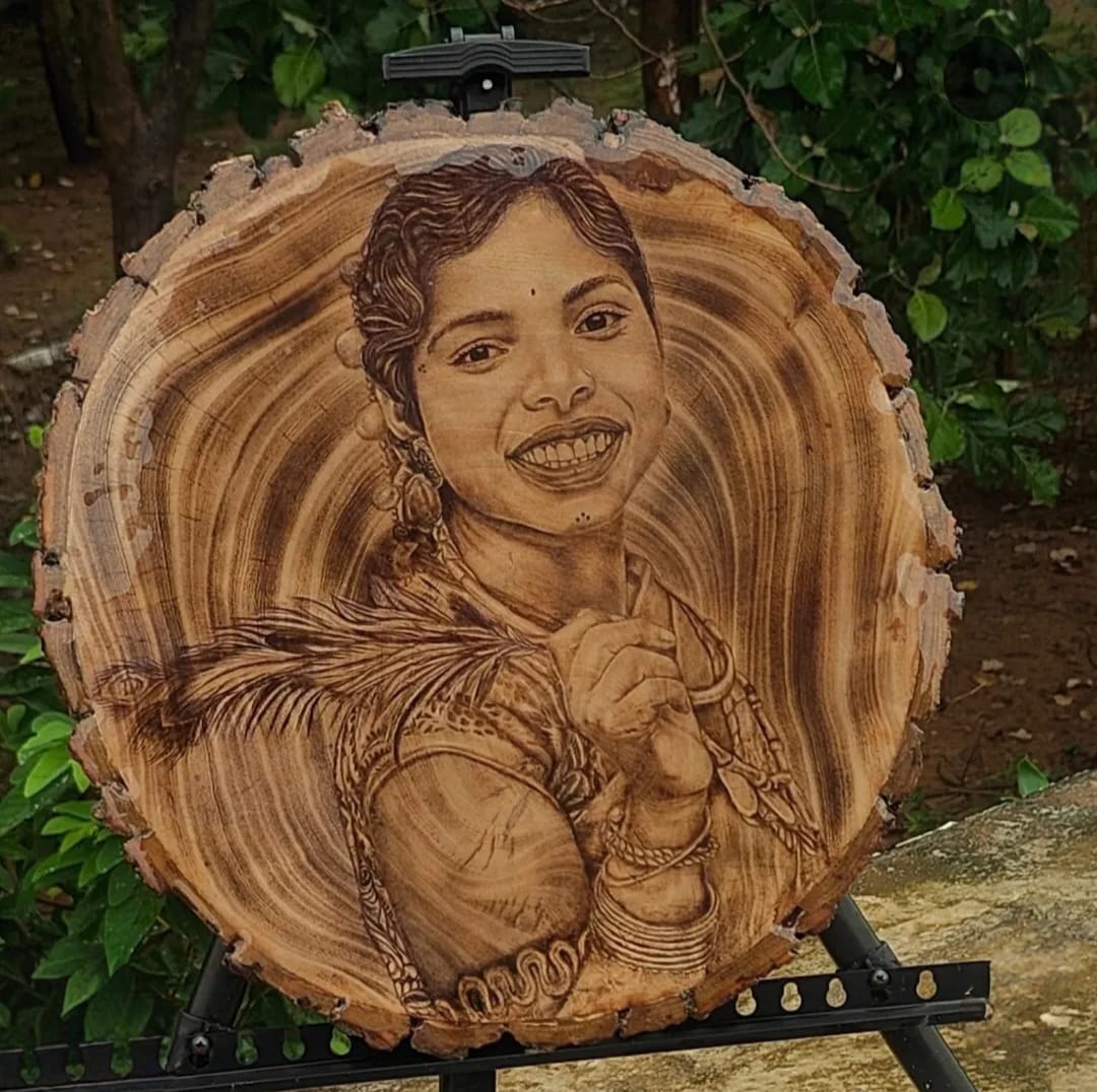 • Technique: An artist uses a specialized heated pen or tool (a pyrography pen) to draw or sketch the design directly onto the wood.