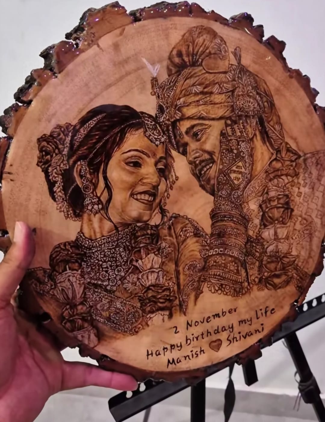 The wood slab/plaque is clearly high-quality and smooth, providing the ideal canvas for the pyrography technique. Great choice of material.