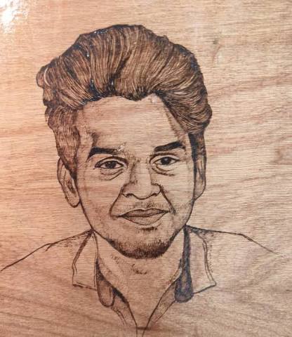 • Look: The resulting artwork features different shades of brown and black scorch marks, ranging from light tan to deep charcoal, which create the image’s shading and detail.